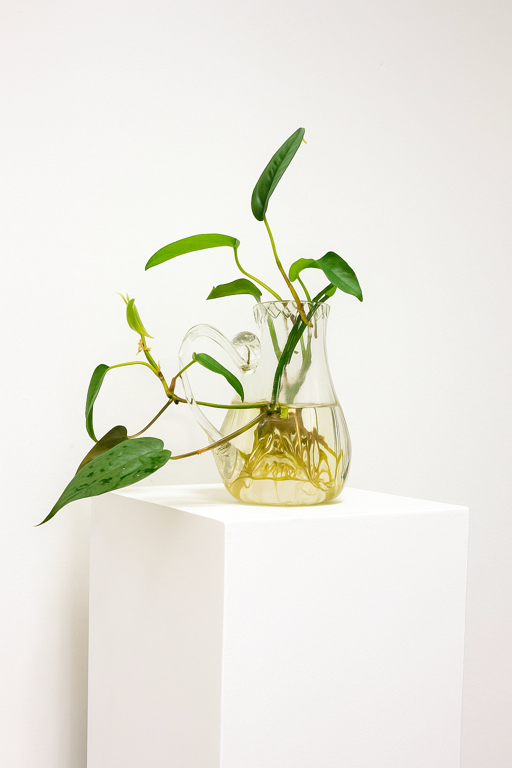 Botanical Lace grew out of my time working on cruise ships, when the rhythm of travel and performance often left me longing for a sense of home. I began making Venetian-inspired thinware and planting living greenery inside—delicate glass vessels that nurtured growth even while I was far away.